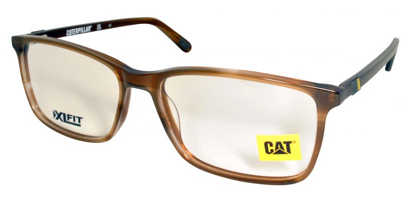 Large plastic frame with matching sides and metal cat logo. Includes spring hinges for added comfort.