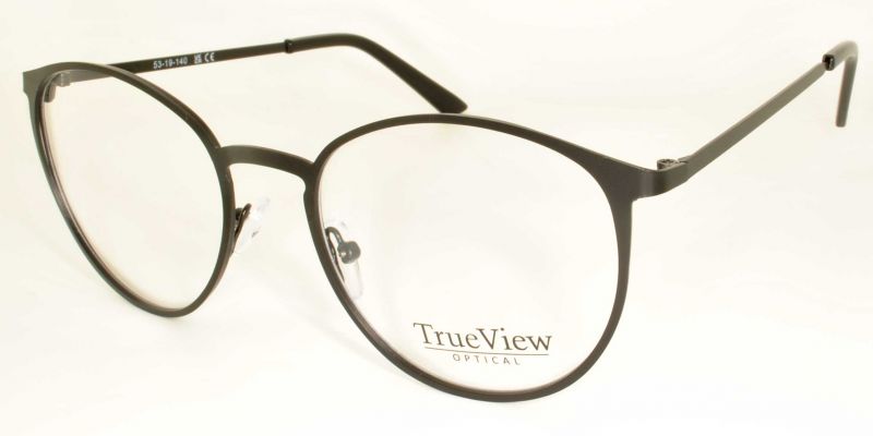 Metal frame with rounded lenses and keyhole shaped bridge.