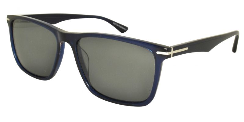 Wayfarer styled classic shape contemporary frame with shiny metal detail on front extending to sides.